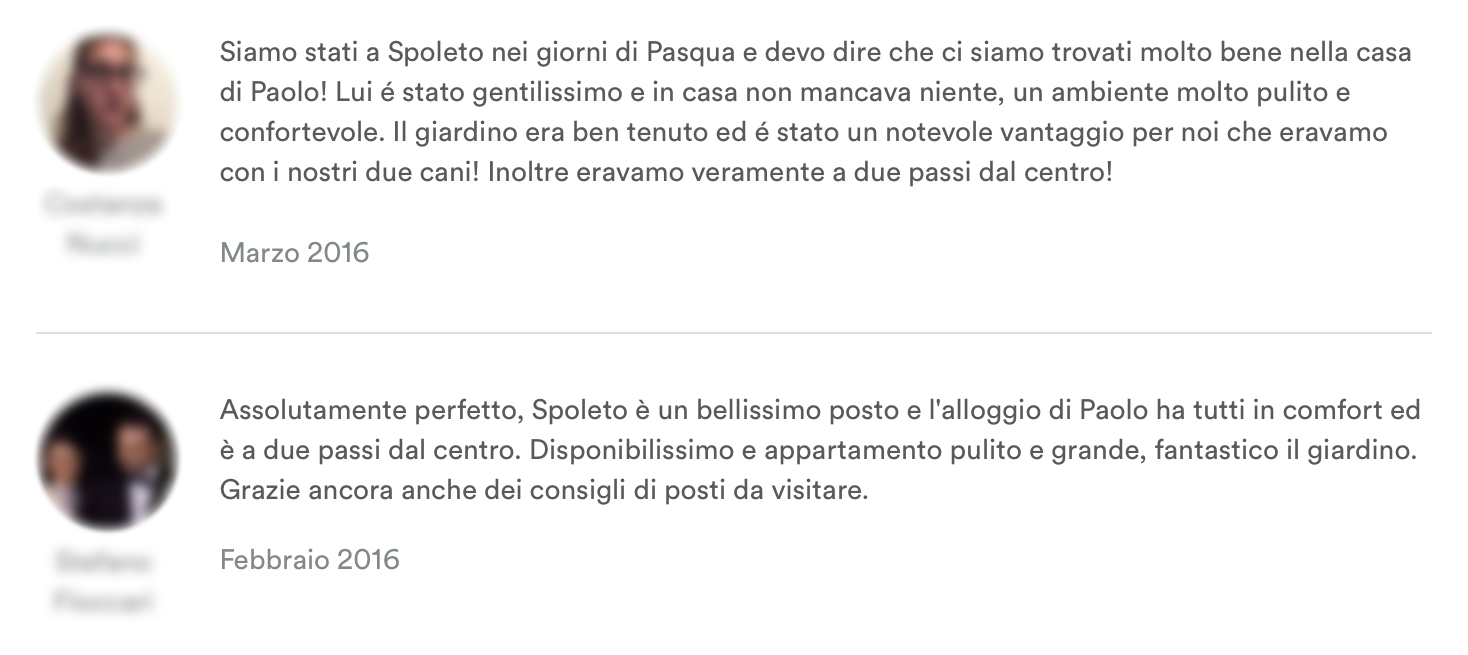 Ecco le due ultime recensioni dei nostri ospiti, sul sito AIRBNB.